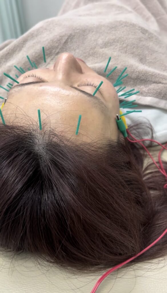 鍼刺激によって血流や新陳代謝が促され、コラーゲンやエラスチンの生成をサポートします。肌がふっくらして明るい印象になりやすいです。